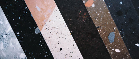 Luxurious terrazzo texture with pink, black, and green marble pieces, high-end and sophisticated