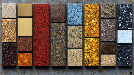 Artfully arranged textured materials in diverse colors and finishes for inspiration.