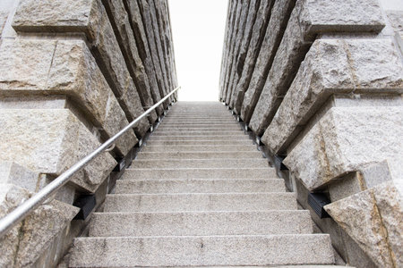 Stone stairs leading upwards into a white sky outdoors