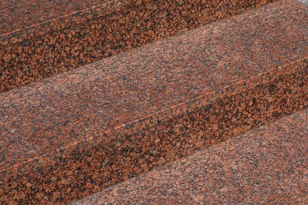 Close-up of dark red granite tile steps outdoors