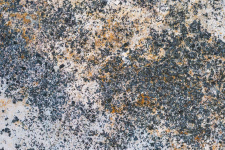 Gray stone, rock. Natural texture. On the surface is a lichen of different colors. Vignetting.