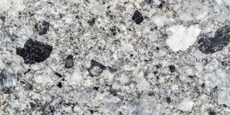 Close-up view of a high-resolution granite stone surface, showcasing its unique natural texture and color variations, suitable for various design projects.