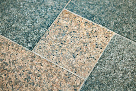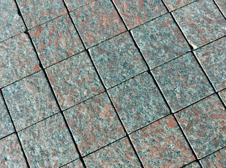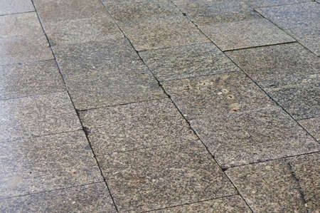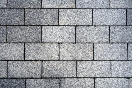 Texture of marble rectangular stone granite tiles with seams on the road. The background.