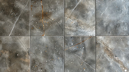 Elegant terrazzo flooring in gray tones with dark grey specks, polished finish, viewed directly from above