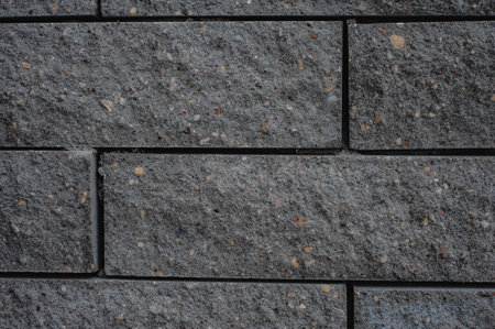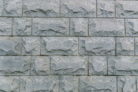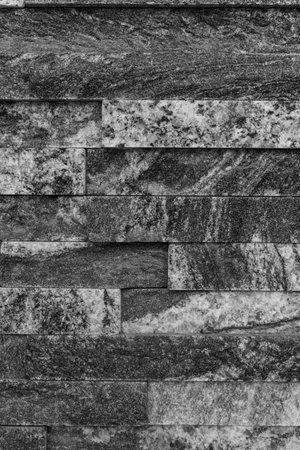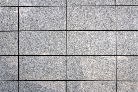 Gray stone tile texture background on outdoors wall. Architectural detail.