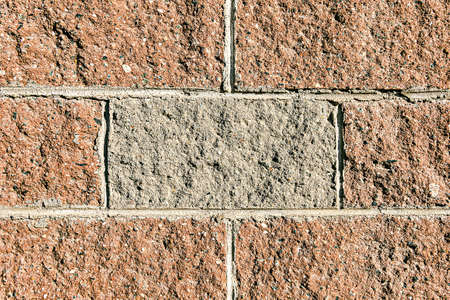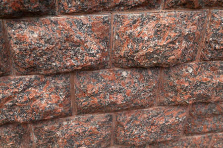 Interesting texture of regular geometric elements. The wall is lined with natural material of red raw granite with fine-grained inclusions