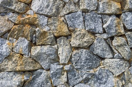 he background of the masonry. A wall of gray granite stones. The rough stones are stacked to form a wall.