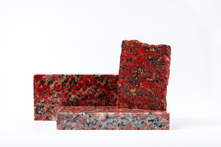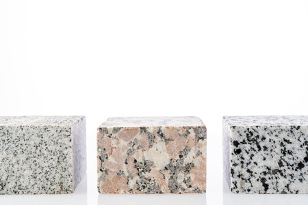 Pieces of polished granite isolated on white background