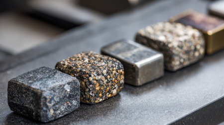 Closeup medium shot of corrosionresistant alloy samples placed on a lab table highlighting advanced blends designed to withstand harsh environmental conditions.