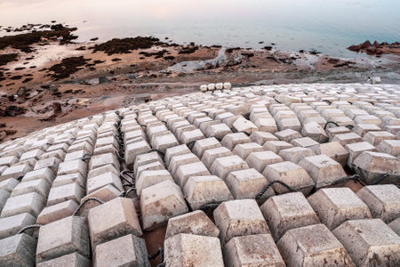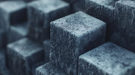 A well-composed image of a pile of concrete blocks showcasing their textured surfaces against a moody background. Ideal for projects related to construction and design.