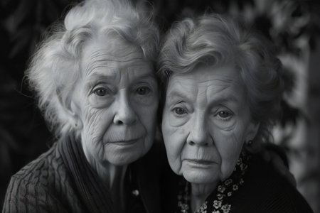 old 60 yo Lesbian couple close up portrait. Ai generative