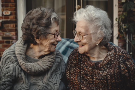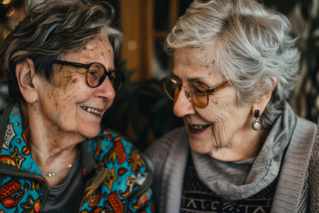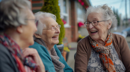 Elderly women laughing heartily sharing joyful moments together. People emotion concept. Generative AI