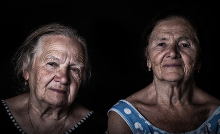 A middle-aged woman with her elderly mother in a heartfelt portrait.