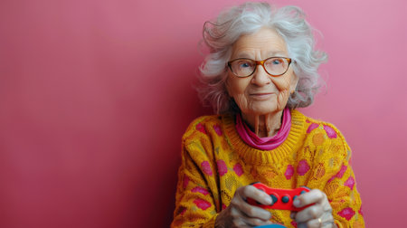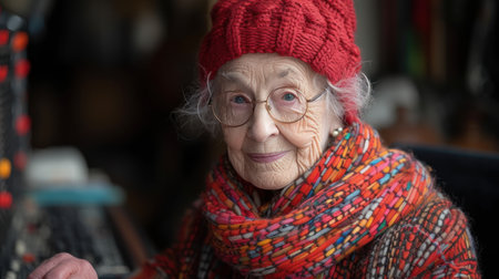 AI Generated. A whimsical elderly character wearing a colorful and vibrant sweater adds charm and joy