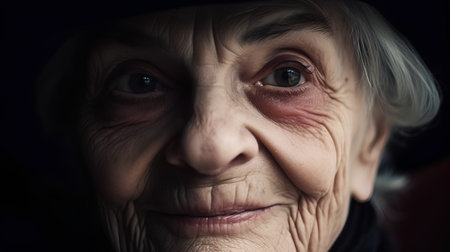 A warm and intimate portrait of an elderly woman with expressive eyes, showcasing the depth of her experiences and emotions
