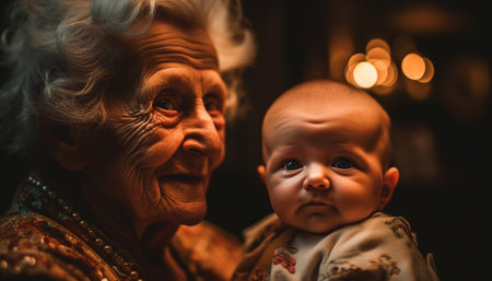Multi generation family embraces love and togetherness in outdoor celebration generated by artificial intelligence