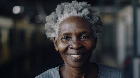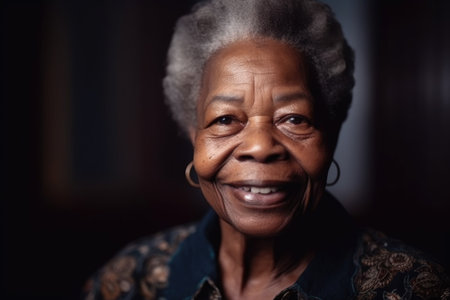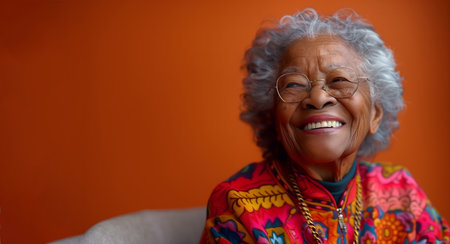 A candid portrait of a joyful elderly woman. her smile suggests a life rich with experiences. perfect for evoking nostalgia. A.I.