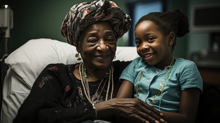 A granddaughter supports her grandmother during a hospital visit and medication. Resilience among diseases.