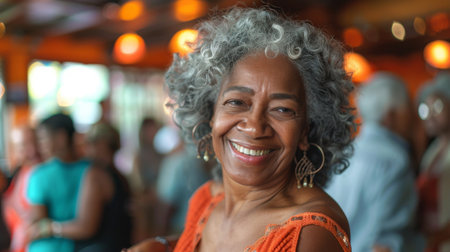 Romantic senior woman dancing to music during dance course. Happy old woman attend salsa dancing class. Leading active and healthy lifestyle. Generative ai.