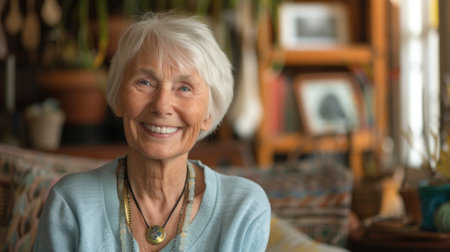 Radiant Joy: Elderly Woman Smiling with Confidence and Warmth