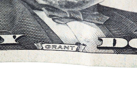 part of the banknote. Last name of President Grant