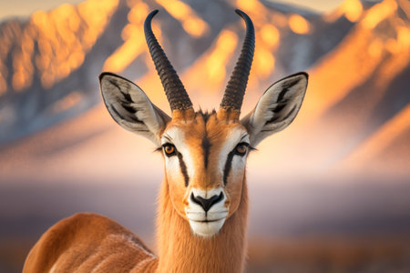 timeless antelope photographed in a leaping pose in a golden plain, in a classic wildlife photography style, with radiant warm tones, backlit glow, high resolution