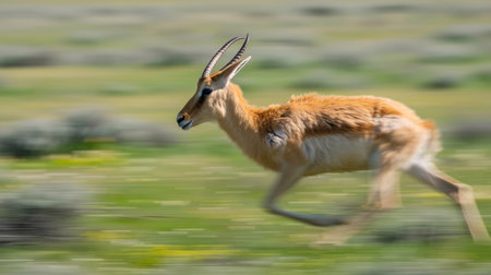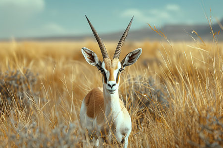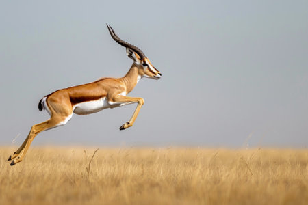 A gazelle is running through a field of tall grass. Concept of freedom and wildness, as the gazelle leaps through the open space