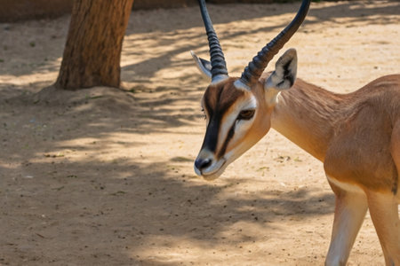 A graceful Gazelle Thomson with striped horns nicely posing for a photograph