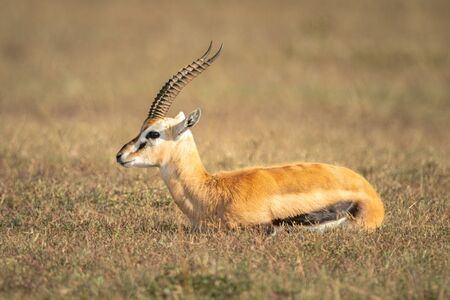 Thomson gazelle lies on grass in profile