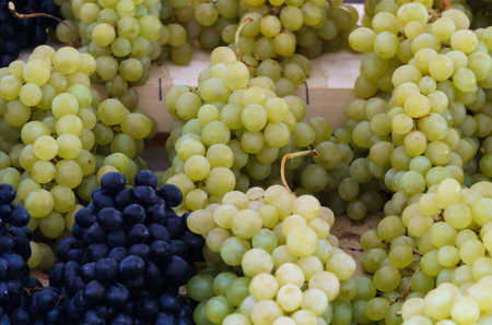 Realistic photo of a bunch of grapes. top view fruit scenery