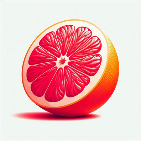 cut bright red orange half grapefruit in the sun light