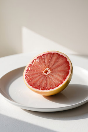 AI Generated. Fresh Pink Grapefruit Slice on White Plate