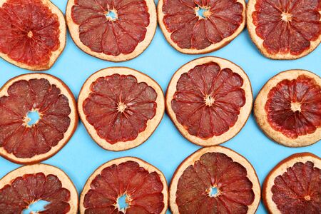Dried grapefruits on blue background