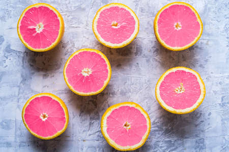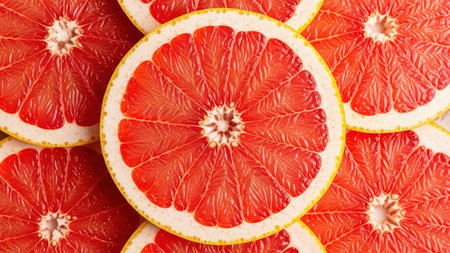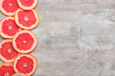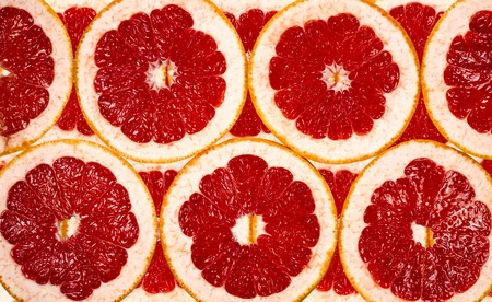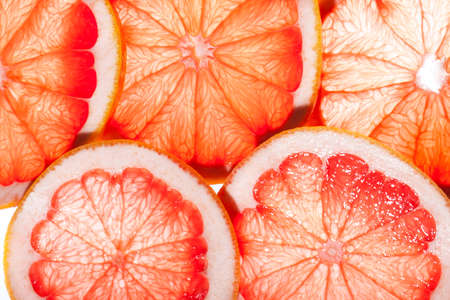 Juicy grapefruit slices background for healthy lifestyle design.