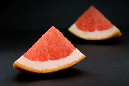 Parts of grapefruit on dark background. Studio shot retouched.