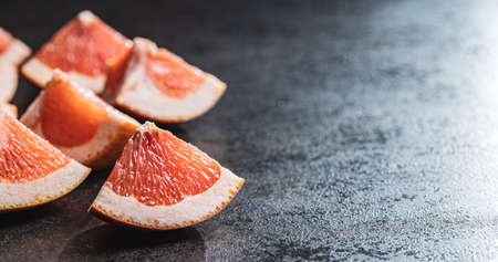 Fresh sliced grapefruit on dark background