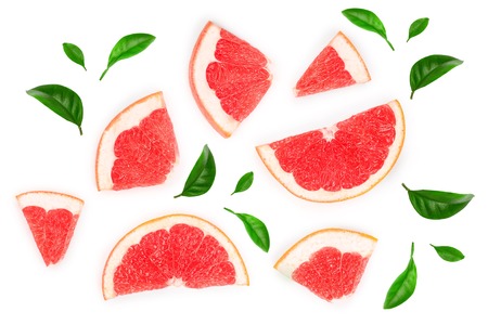 High vitamin C. Juicy grapefruit slices on white background.