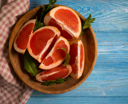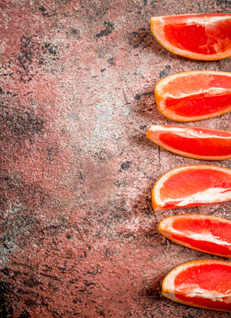 Pieces of fresh grapefruit. On rustic background