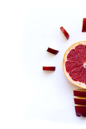 Idea. Light bulb from grapefruit and apple on a white background (concept)