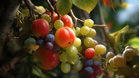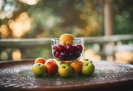 Rustic table decoration with fresh organic fruit generated by artificial intelligence
