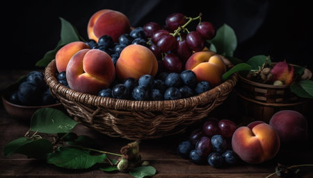 Organic fruit basket, ripe and juicy berries generated by artificial intelligence