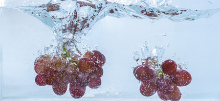Grapes splashing in water over background