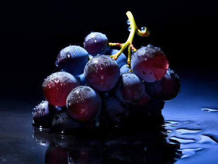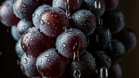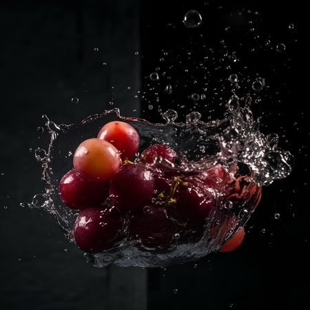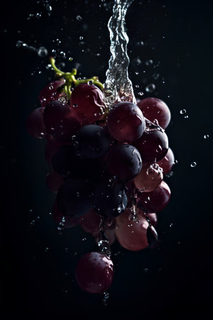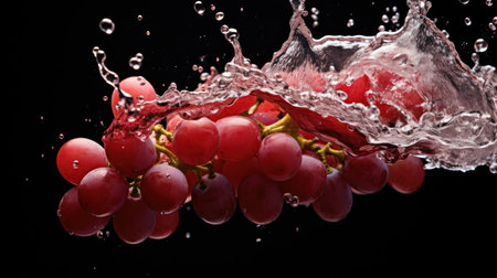 Dramatic Grape Splash: Water Droplets on Dark Background - Generative AI
