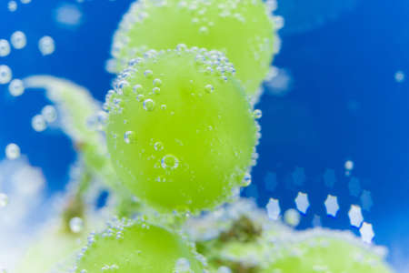 close-up of grape with bulbs underwater