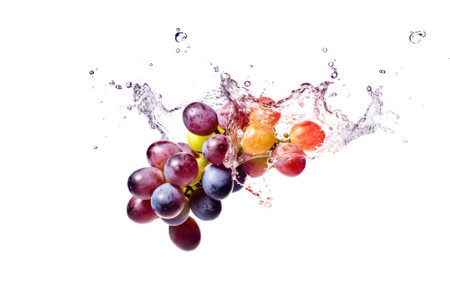 Grapes splashing into water with a splash, isolated on white background
