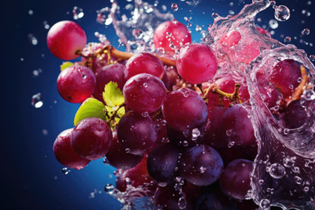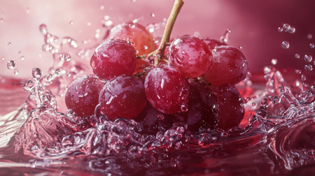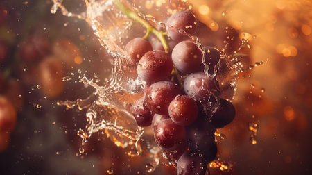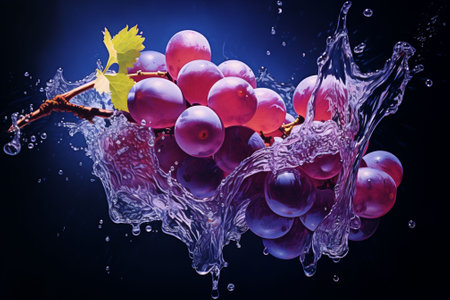 Grapes splashing in purple liquid create a vibrant display of wines natural essence