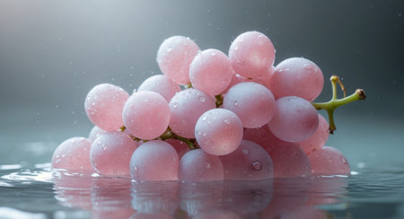 AI Generated. Pink Grapes Submerged in Water Reflecting Light