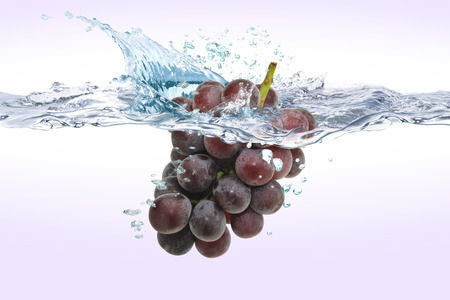 Purple grapes splashing into water, highspeed capture