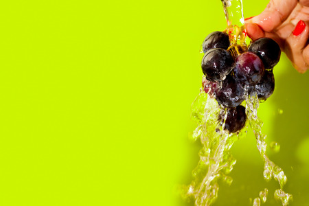Grapes with water splashes from above, ample space available on the top for text