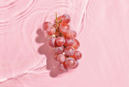 Pink grapes on pink background with splashing water